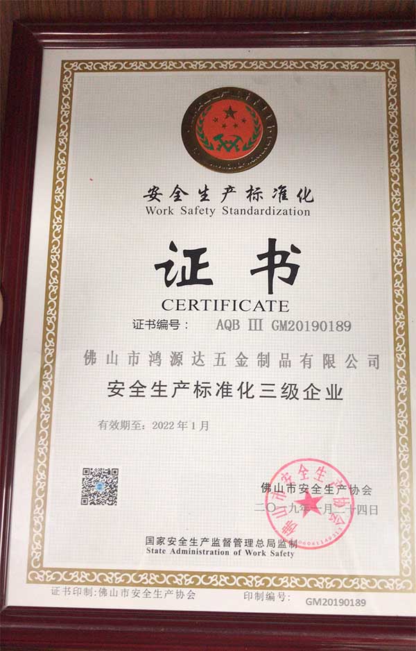 公司一直以誠信、實力、質量的高要求獲得業界的認可,鴻源達一直以“客戶至上、信譽第一、精益求精、優質服務”為經營理念持續長期發展,正是因為高標準,高要求,鴻源達五金制品廠受到了廣大客戶的一致認可與好評。